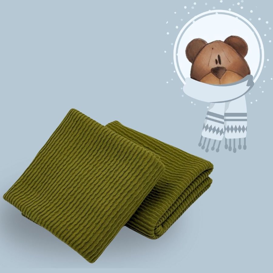TEXFL2512 tessuto felpato oliva : ovvero un tessuto elasticizzato in felpa leggera con lavorazione a rilievo (goffrato) in colore verde oliva